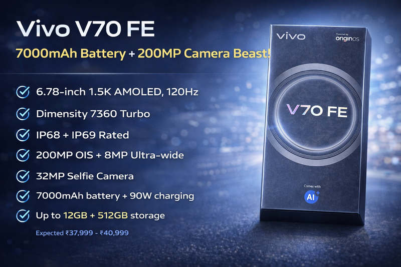 In simple words, the Vivo V70 FE is built for camera lovers and battery-focused users who want a stylish all-rounder.
